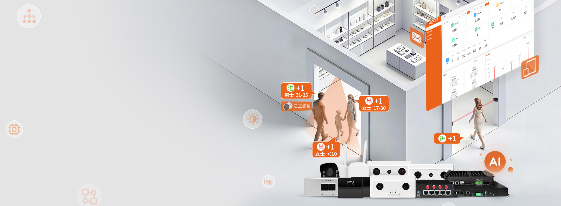 在连锁店主要进出口部署客流统计设备,通过智能识别与数据分析, 帮助管理层理解门店运营表现。