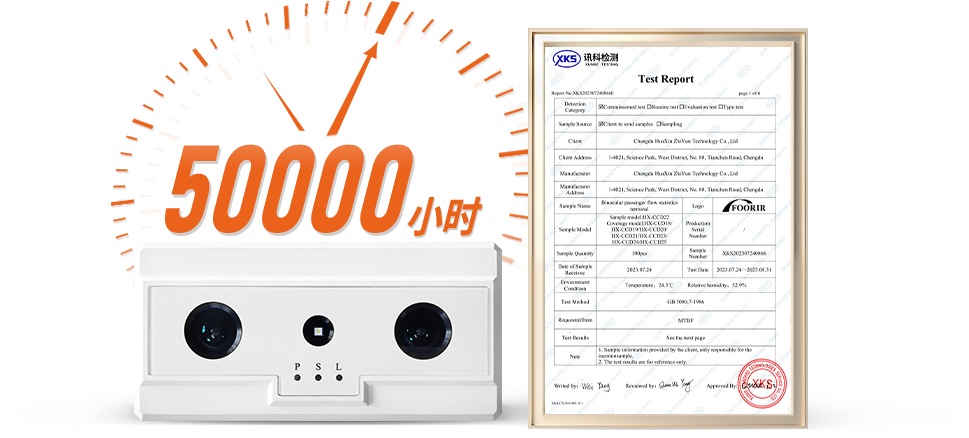 双目客流统计HX-CCD23已获得相关认证,平均故障间隔时间(MTBF)高达5万小时,确保运行稳定。