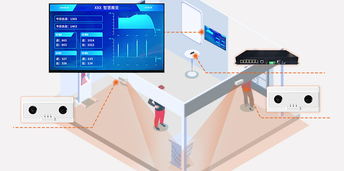 通过部署 AI 双目客流统计终端,实现对展览现场观众的实时监测与分析,实现全场景、全链路的智慧客流管理。