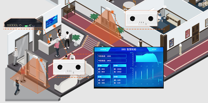 • 数据显示:数据显示功能使客流统计主机能够通过HDMI接口或Web页面实时直观地显示接收到的数据。